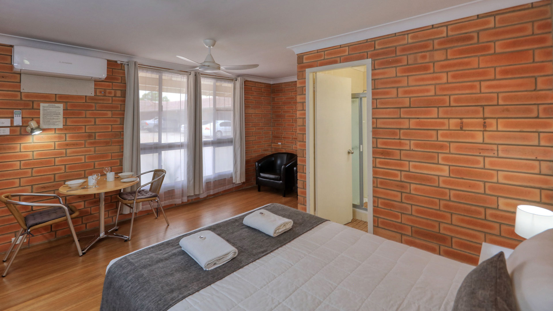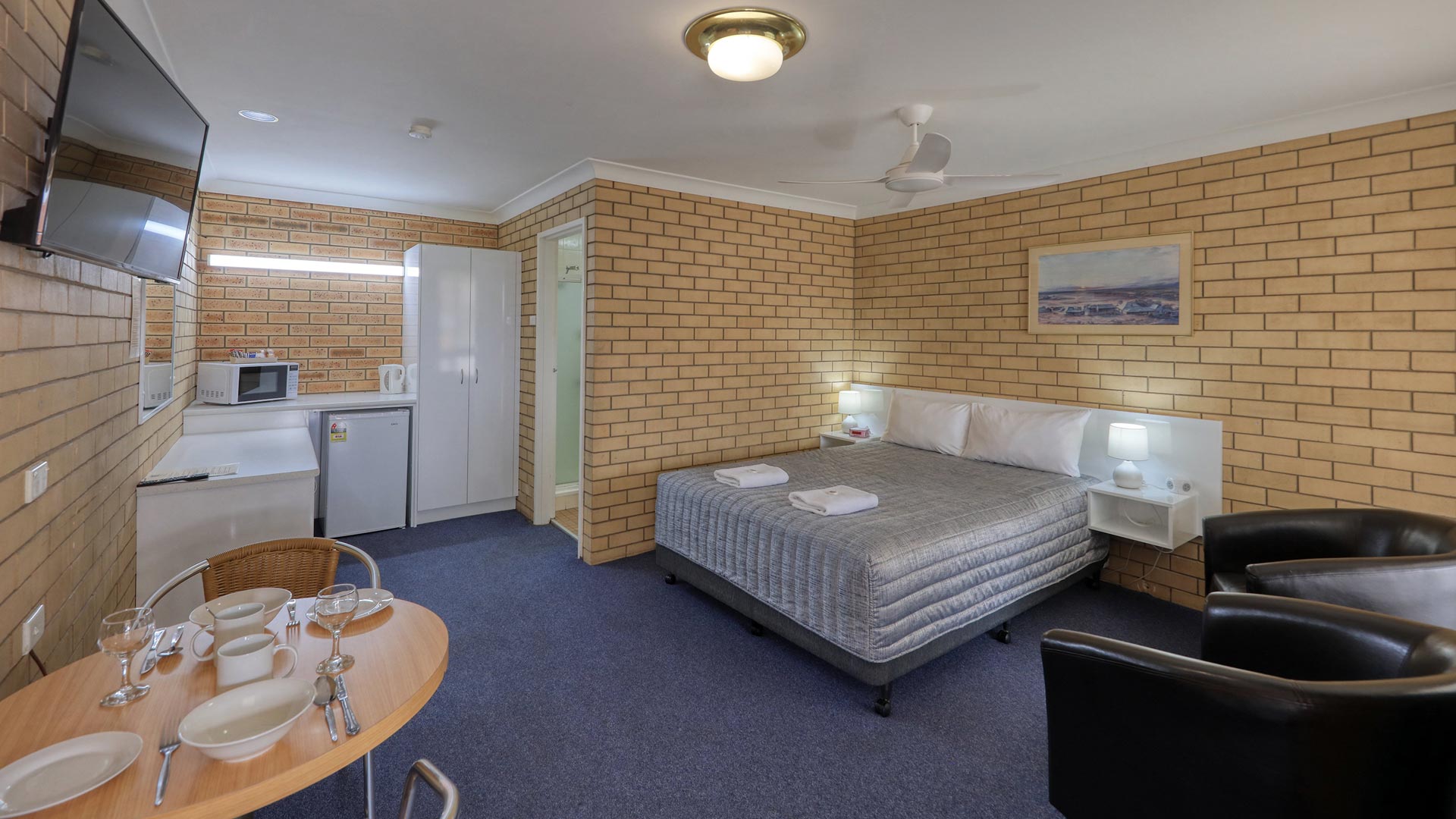 The rooms have a queen with ensuite and are fitted with a seating area. Each room is equipped with a microwave, toaster, a kettle, tea and coffee facilities, a shower, free toiletries and a desk. All rooms have a private bathroom with a hair dryer. Guests can enjoy access to an outdoor swimming pool, barbecue and free WiFi.